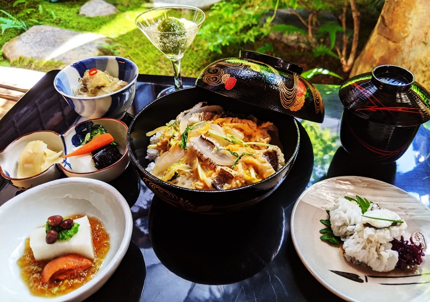 【 鱧丼膳 ¥3,500(税別) 】・小鉢 旬のお豆腐・造り 鱧の焼霜造・鱧南蛮漬・鱧丼・汁物・甘味