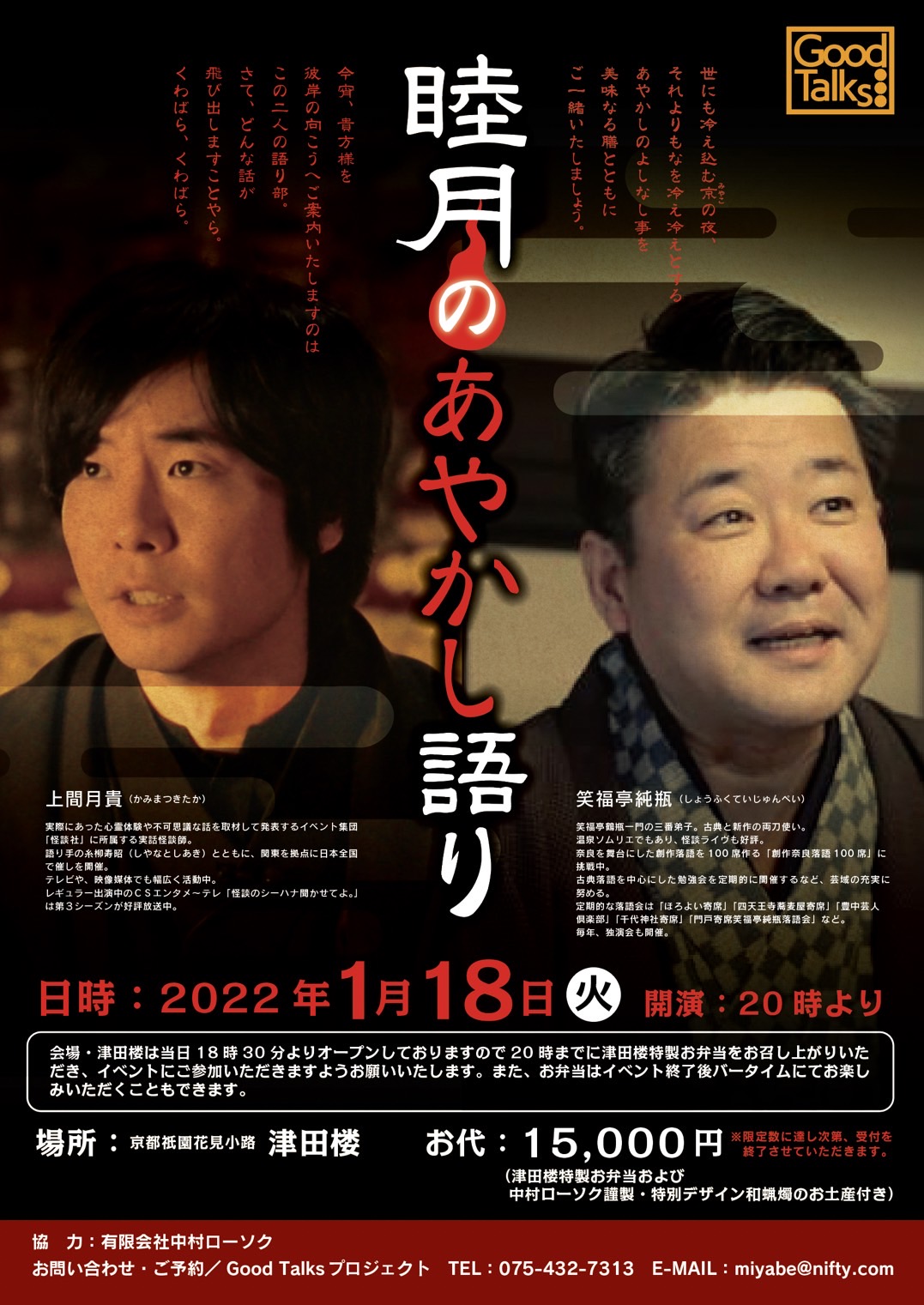 津田楼のお食事と怪談話をお楽しみ頂けるイベントです。