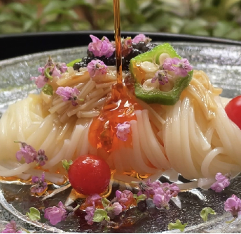 ランチタイムでは こだわりの半田麺に添えております 。是非お試しください。