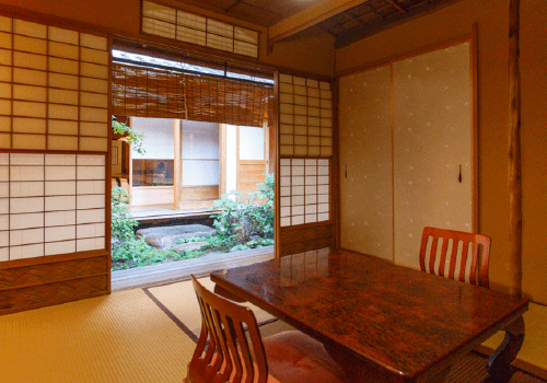 坪庭側の静かな広いお部屋は津田楼の特等席。